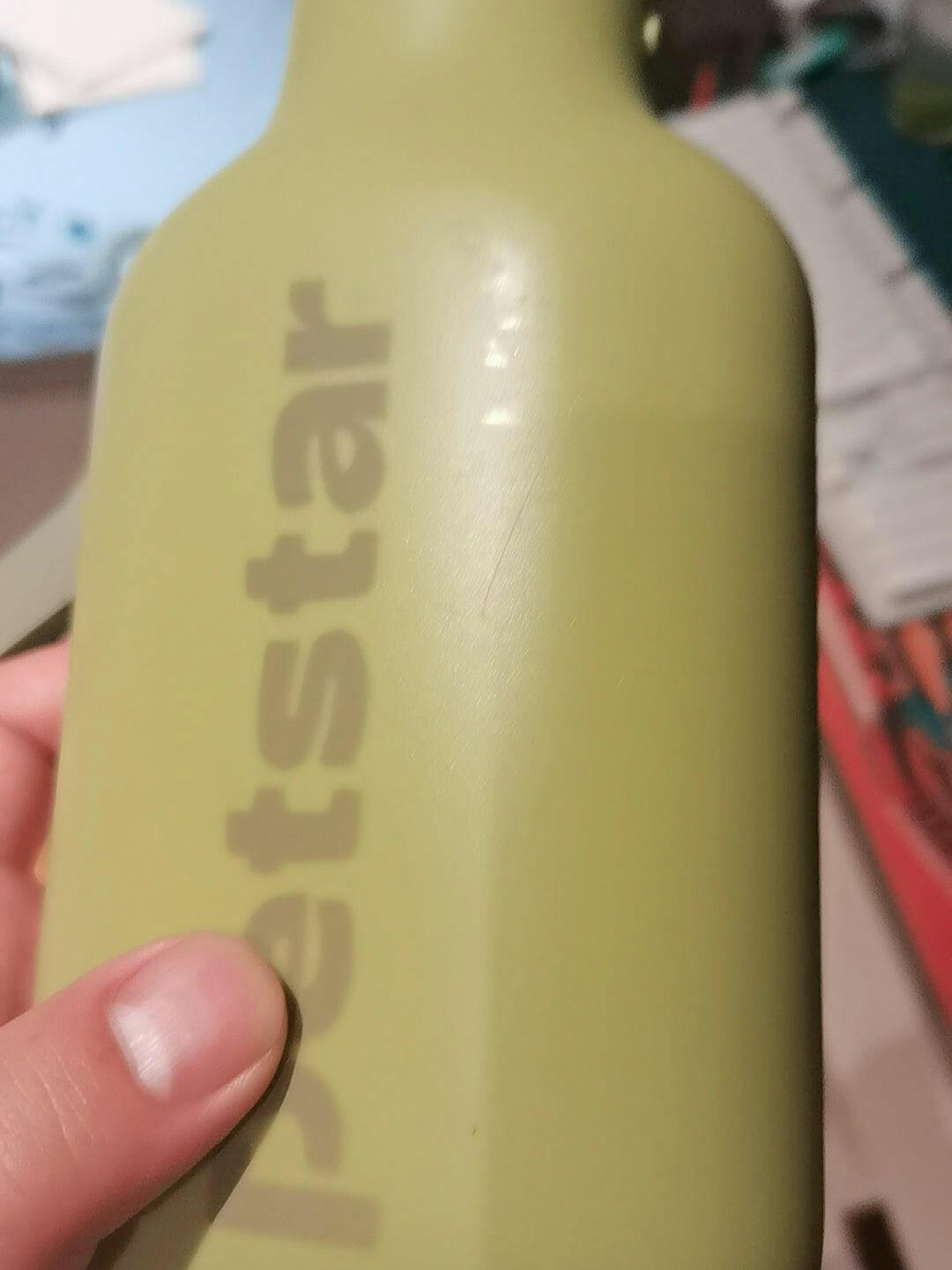 I am truly sorry to see that scratch. While it doesn't affect the function, we know it’s disappointing for a premium bottle. It likely happened during shipping, but we want to make it right for you.